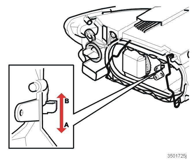 There are two motors which angle the headlamps upwards or downwards to control the range of the beam. The motors are integrated in the headlamps.