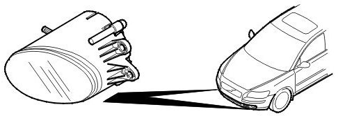 The rear fog lamp are in the tail lamps. The fog lamps are operated via a button in the light switch module (LSM). An LED in the button lights when the fog lamps are activated. The rear fog lamp can only be activated when low beam is on (market dependent). The light switch module (LSM) is directly connected to the central electronic module (CEM). The lamps are powered directly via an output on the central electronic module (CEM).