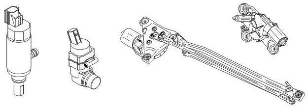 The windshield wipers are powered by a motor positioned under the cowl. There are also washer nozzles on the hood and bumper cover for cleaning the windshield and headlamps. For cars with five doors, there is also a wiper and washer nozzle for the rear windshield. The washer nozzles are connected to two different pump motors on the windshield washer reservoir at the front right of the engine compartment. One pump motor is for high-pressure cleaning of the headlamps. The other pump is for washing the front and rear windshields (5 door).