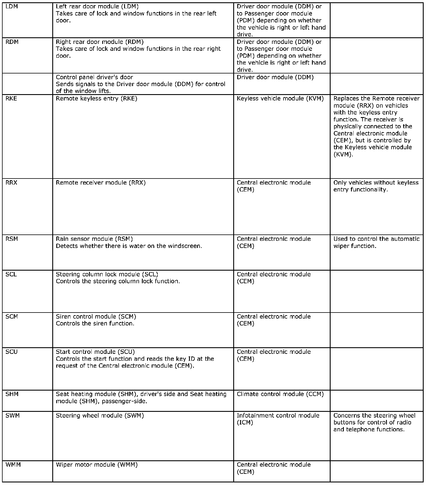 NOTE: The illustration above and the table below is an example that shows model year 2007. All other information in the document is general and applies to all model years.