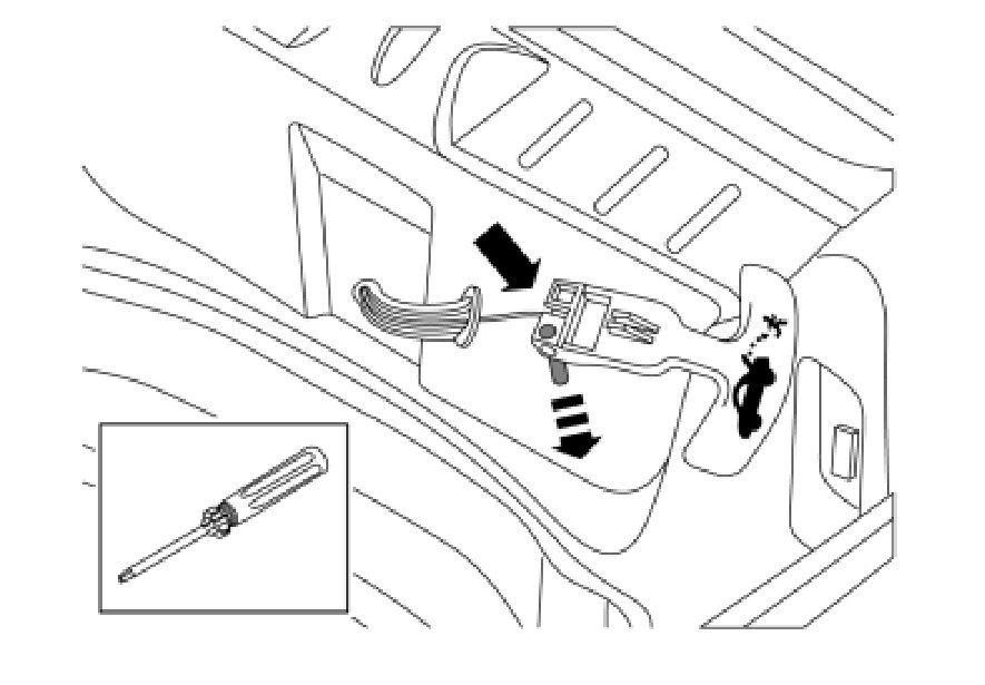 - Remove the load divider lock by using a weatherstrip tool to pry between the carpet and lock.