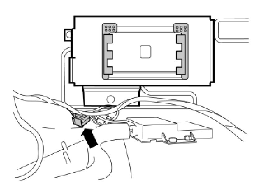 - Locate the 4-pin green connector that is taped to the parking assistance cable harness. Connect this to the adapter wiring.
