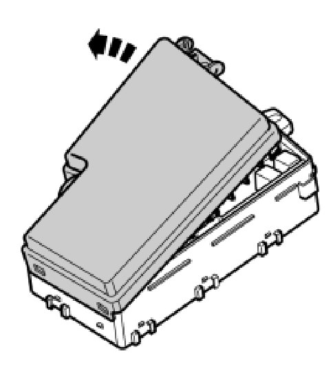 - Pull up the catch on the cover on the fuse box in the engine compartment. Pull up the cover and remove it.