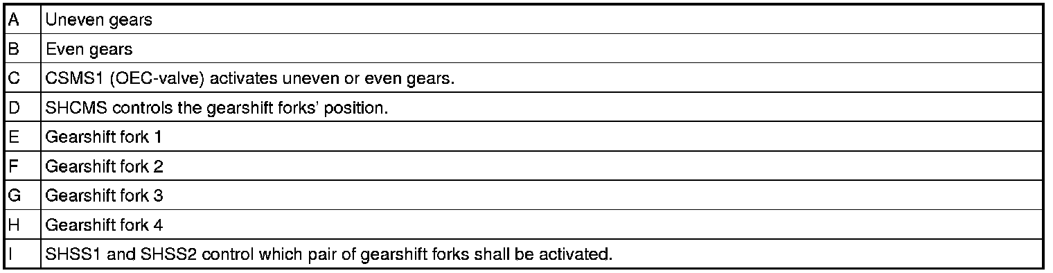 - Solenoid SHCMS controls which position the activated gearshift fork shall have, that is, which gear on respective gearshift fork shall be activated (e.g., if gear R, N, or 5 shall be activated for gearshift fork 1).