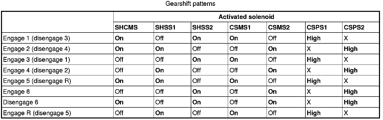 X = Linear solenoids do not have On and Off. Therefore, a high signal is given when they are activated and affect shifting, and an X when its status is not relevant for shifting.