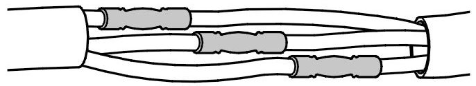NOTE: If several cables are to be spliced at the same point, spread out the splice points, as illustrated.