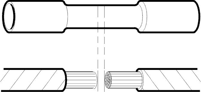 Strip both ends of the cable according to the table above. Use: 951 2620.