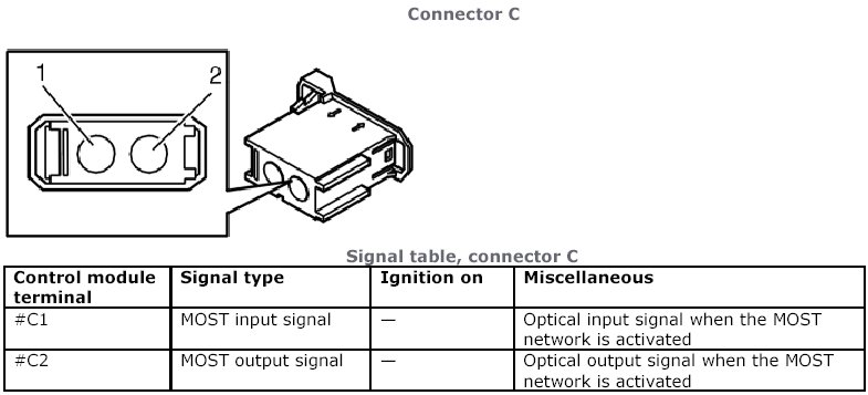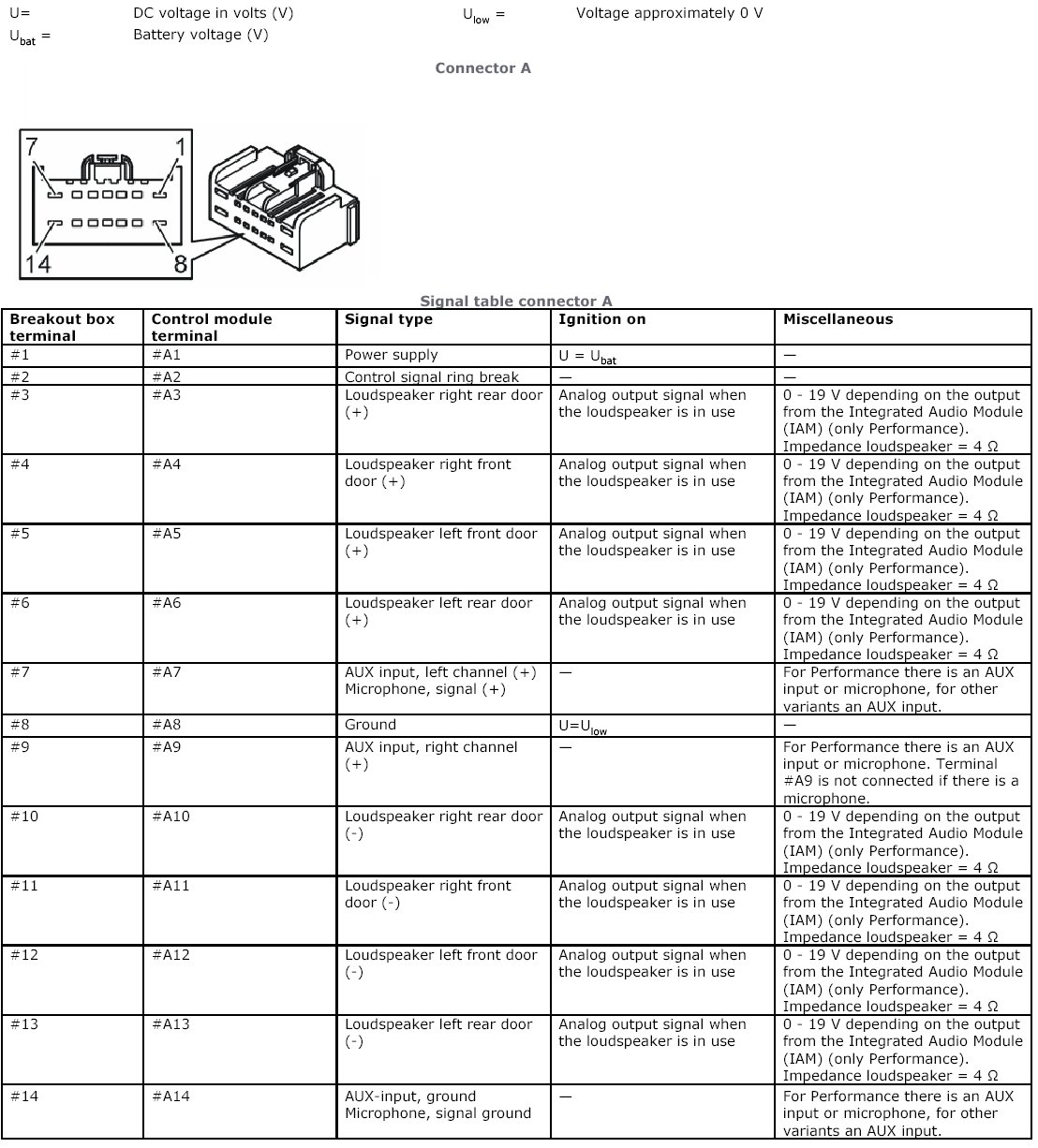 All the values given below are between the terminals stated in column 1 and terminal #A8 in column 2 (power ground). This applies unless otherwise indicated in brackets.