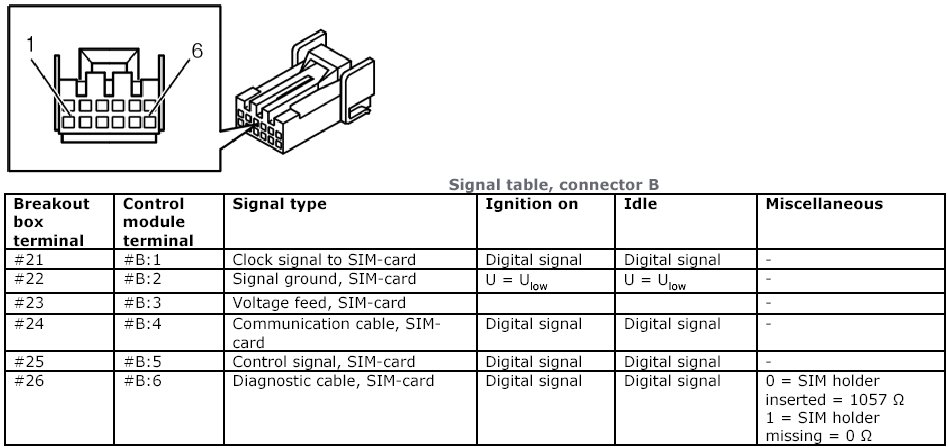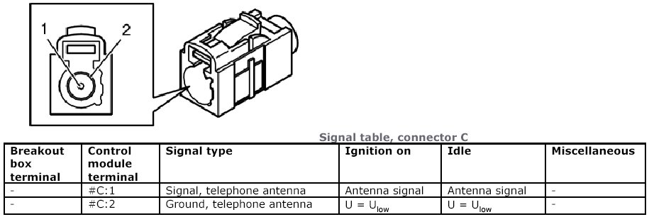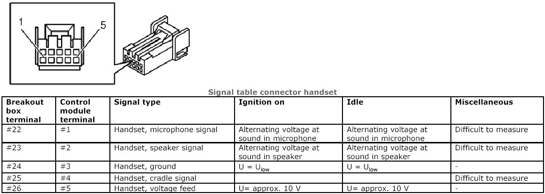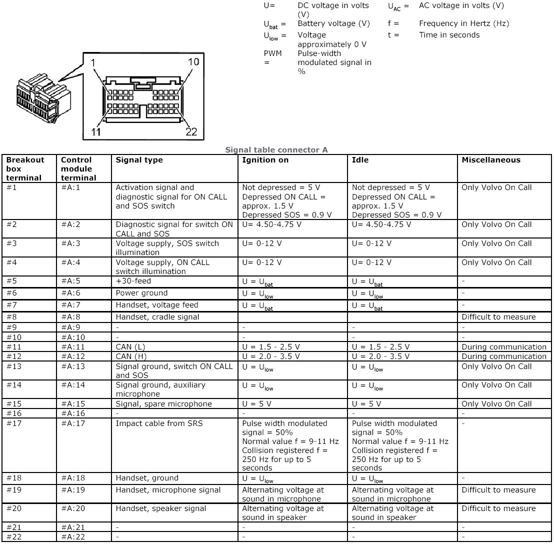 All the values given below are between the terminals stated in column 1 and terminal #A:6 in column 2 (power ground). This applies unless otherwise indicated in brackets.