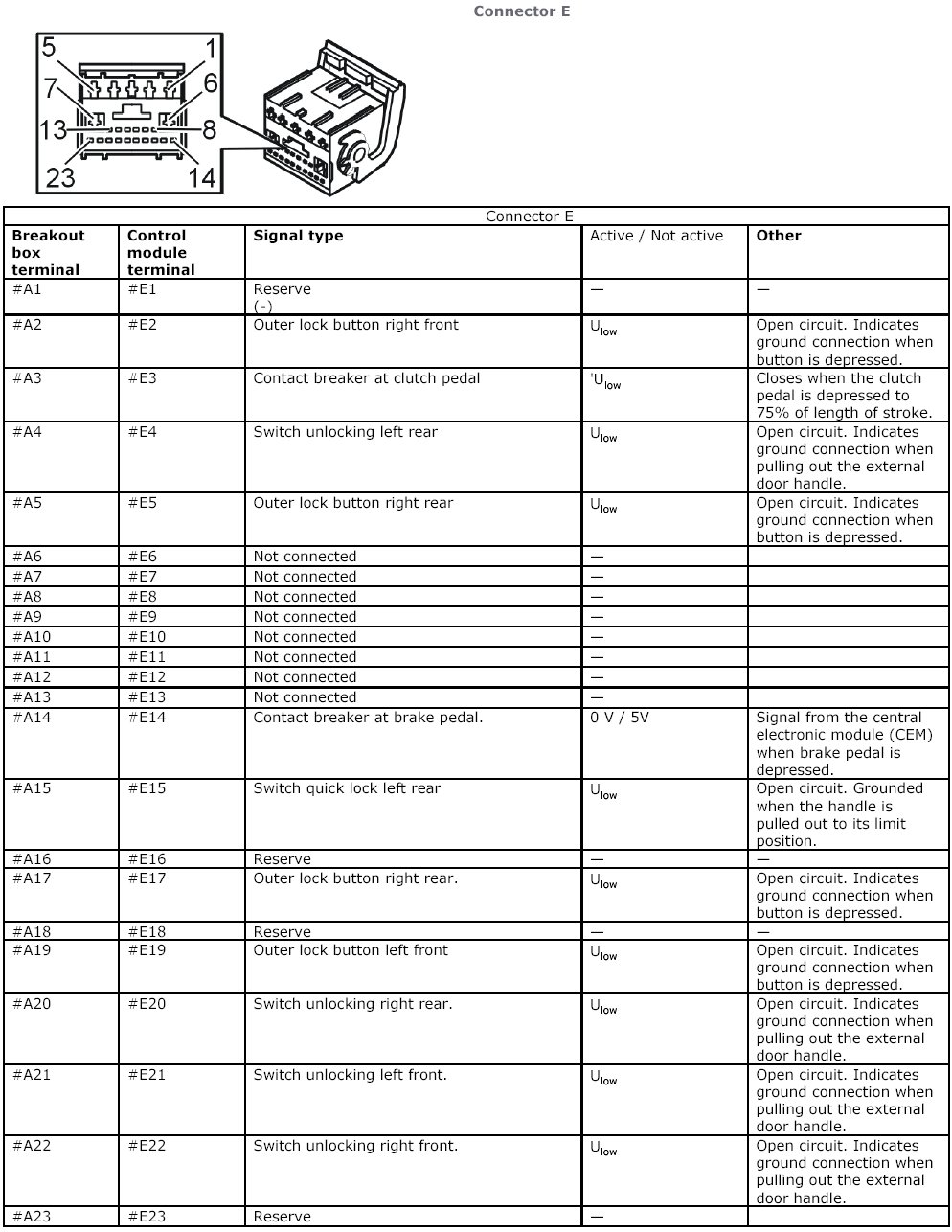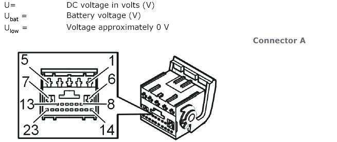 All values given below are between the terminals stated in column 1 and terminal #B4 (power ground). This applies unless otherwise indicated in brackets.