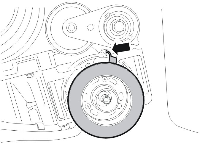 Thread the cable between the belt tensioner and the top edge of the compressor.