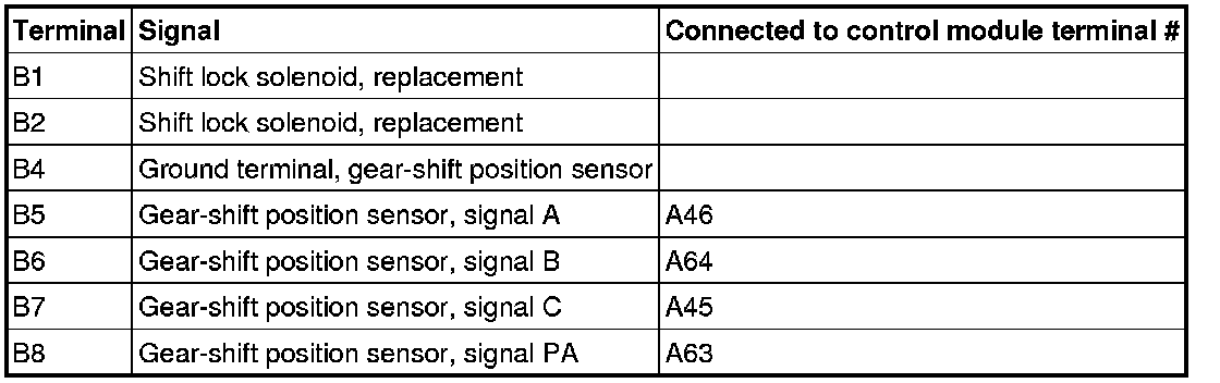 Control module terminals #A1-#A60 correspond to terminals #A1-#A60 on the breakout box, terminals #A61-#A70 correspond to terminals #B1-#B10 on the breakout box.