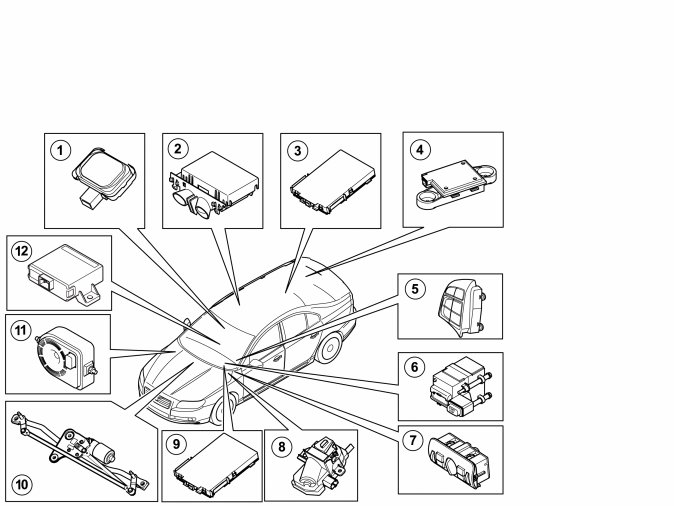 9. Remote Receiver Module (RRX), Vehicles without keyless entry (only Remote receiver (RKE) for the Japanese market)