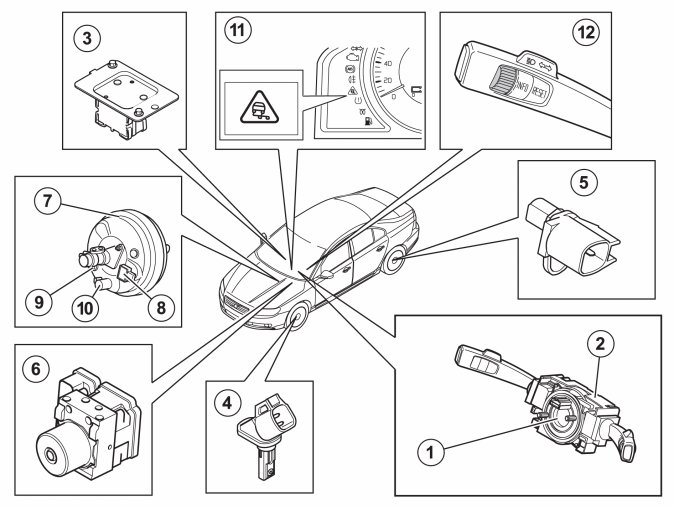2. Steering wheel angle sensor module (located internally in steering wheel module (SWM)).