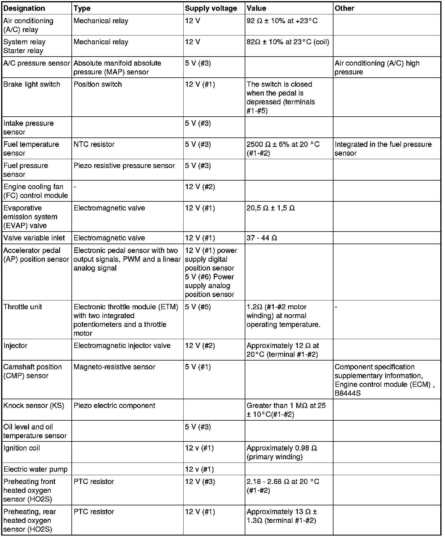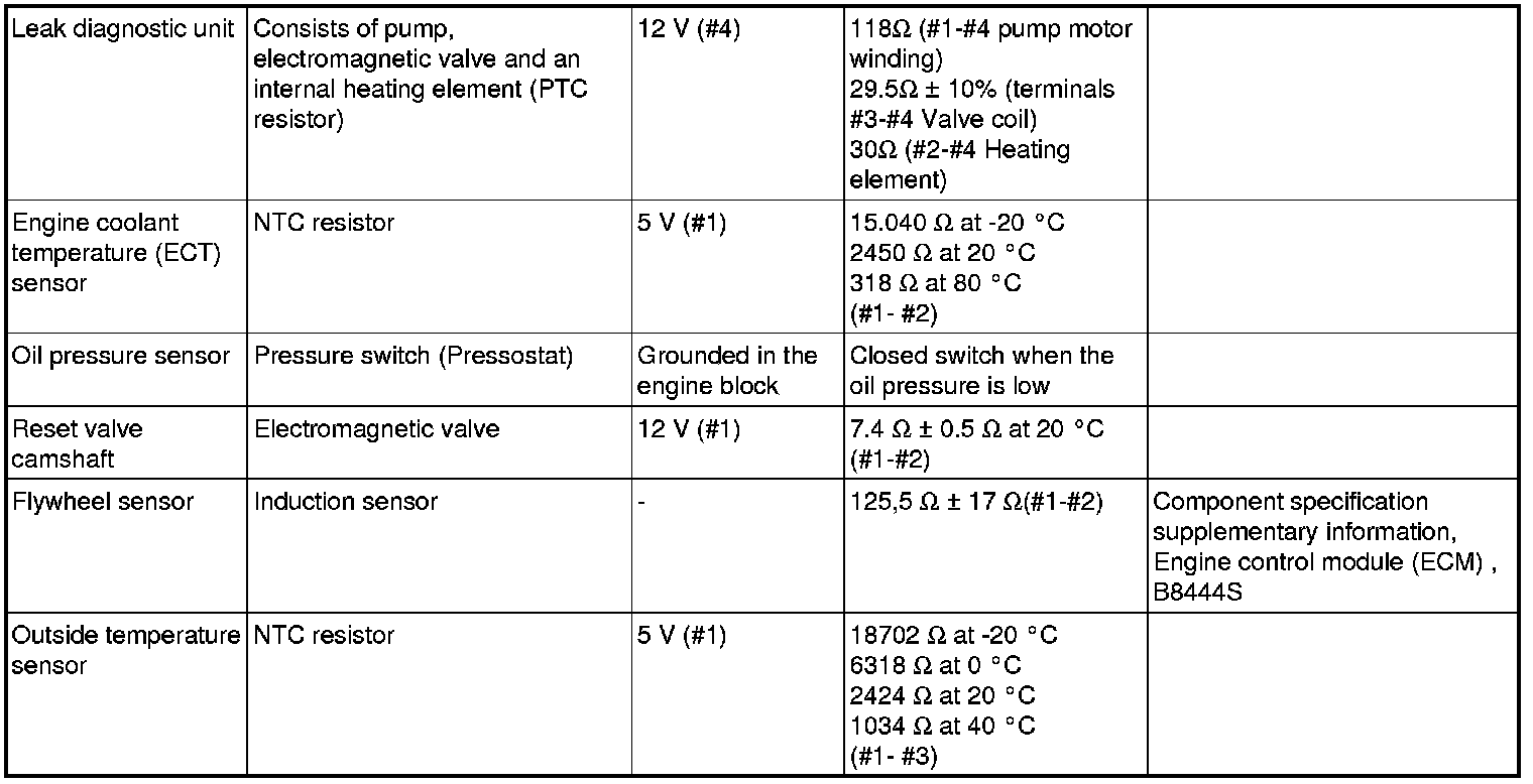 The component specification gives the value of the component when the connector is disconnected. Where no value is given, it is not possible to measure a relevant value at the component.