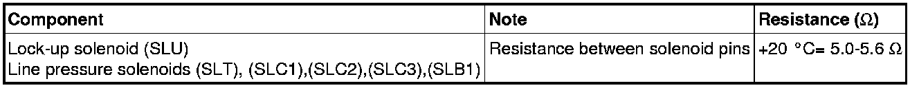 Connect an ohmmeter between terminal #1 and the outer casing of the gear shift solenoid. For resistance values see the table below.