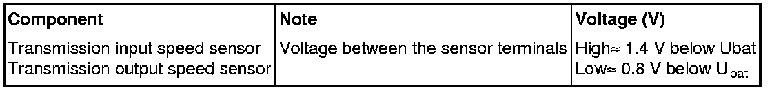 Move the gear selector lever to gear position N. Raise the vehicle so that the drive wheels hang freely. Measure the current/voltage while spinning the wheels in the same direction. For values see the table below.
