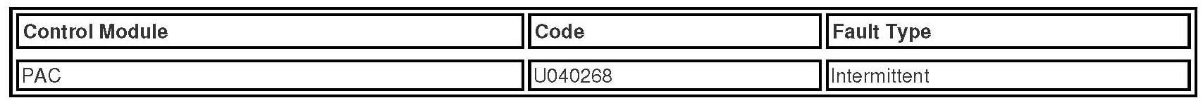 ^ Park Assist Camera (PAC) will not show the reverse camera image. This will also cause a PAC Diagnostic Trouble Code (DTC) U040268-Invalid Data Received from Transmission Control Module