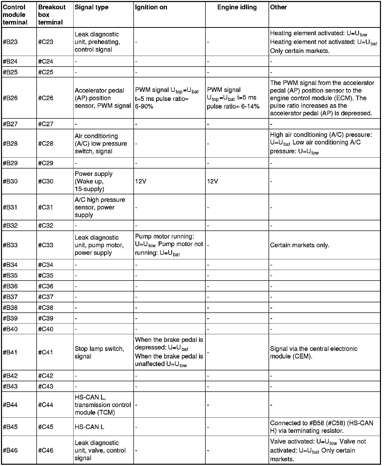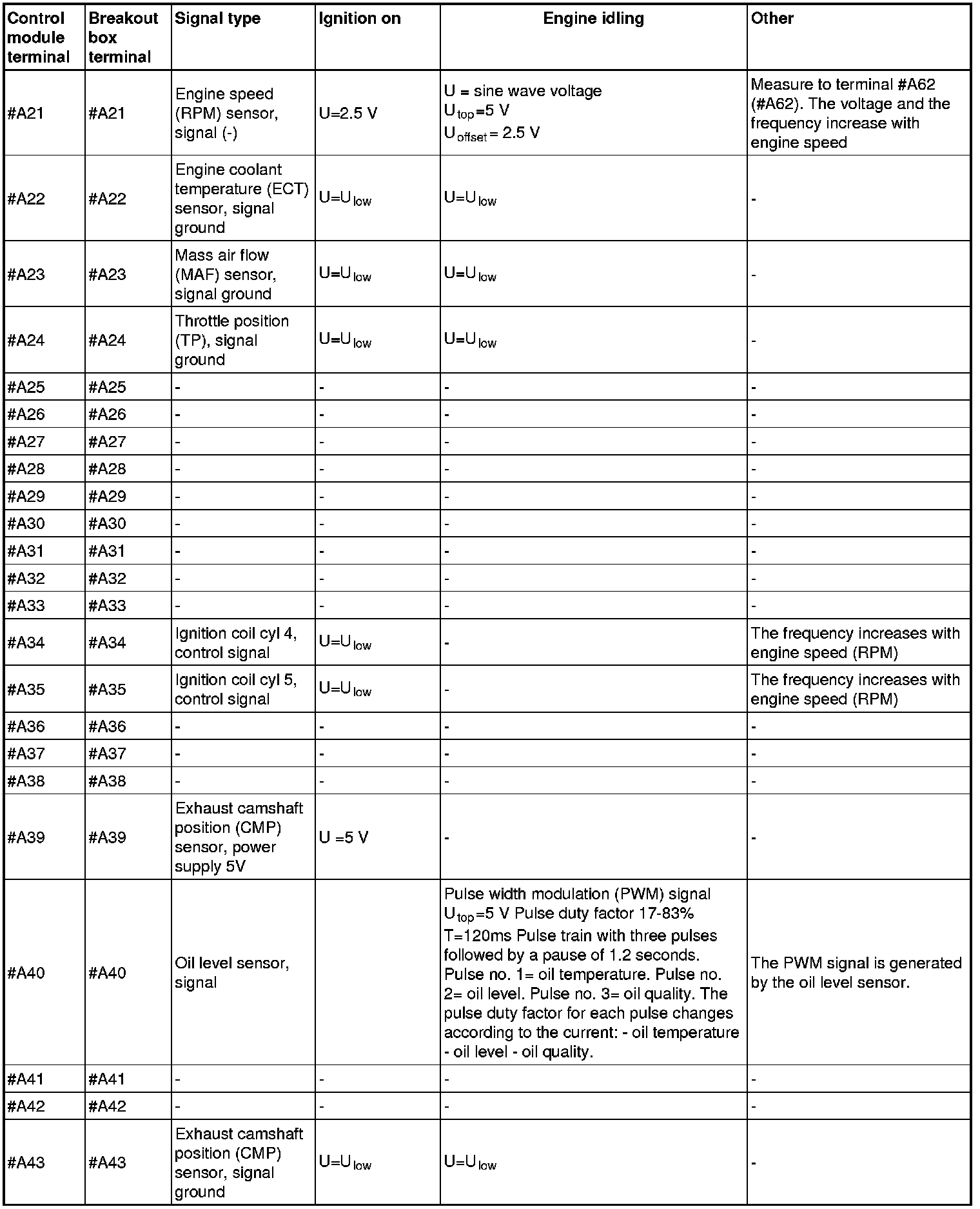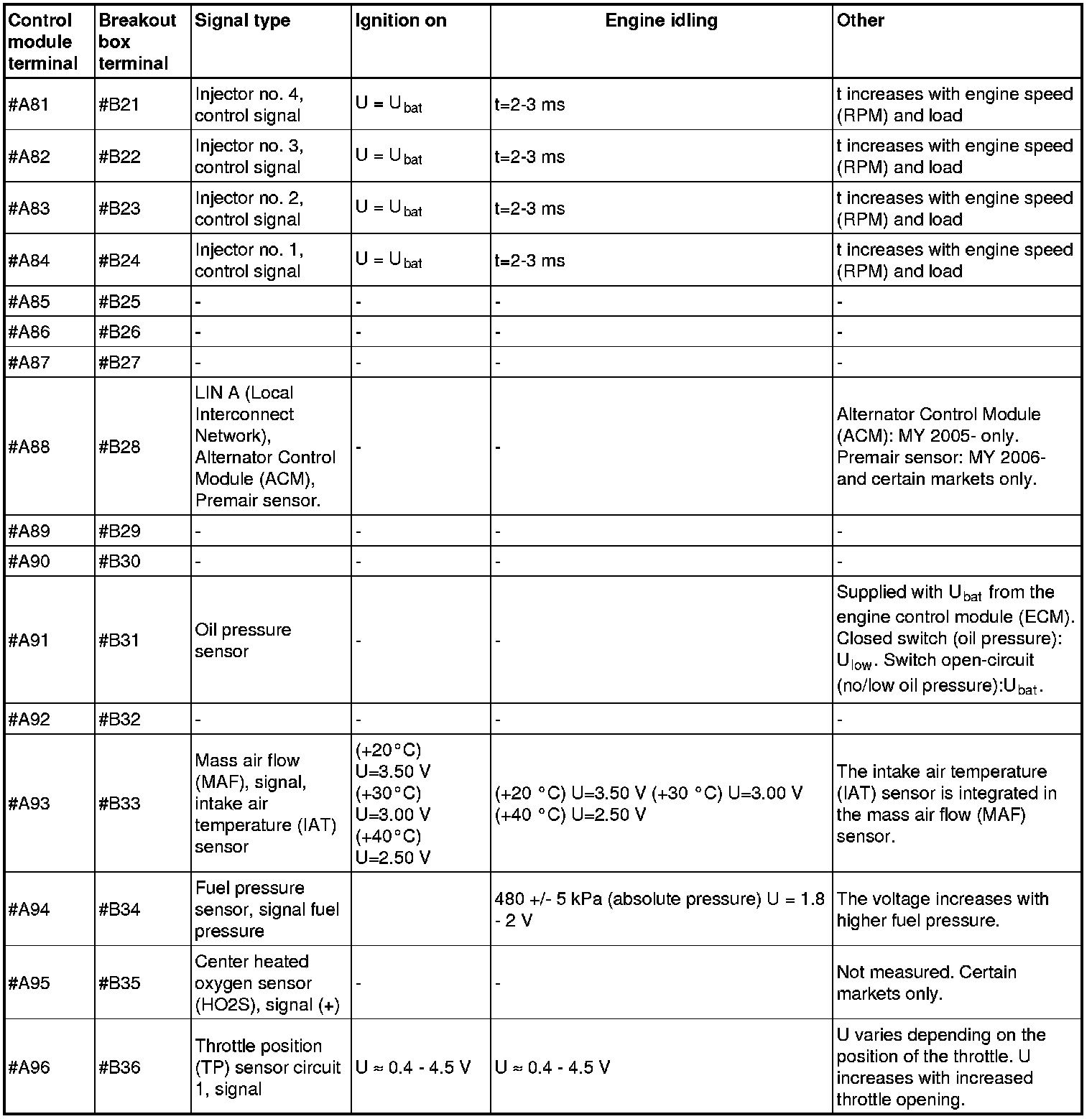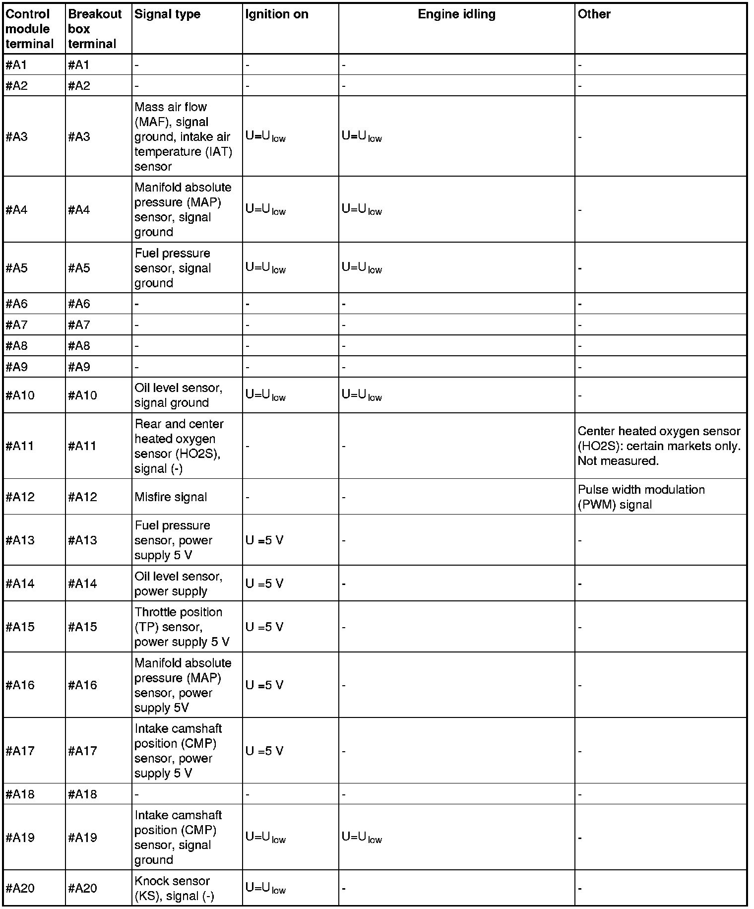 All values given below are between the terminals stated in column 1 and breakout box terminal in the terminal) and terminal #B1 (#C1) unless otherwise indicated in column 6 (Miscellaneous).