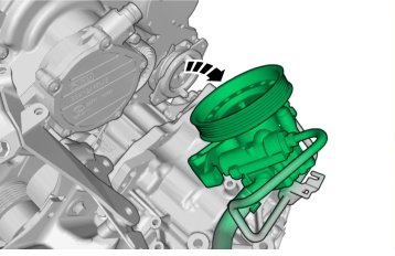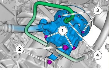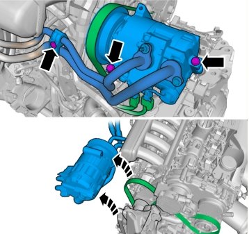 Carefully lift away the AC-compressor without loosening the pipe connections.