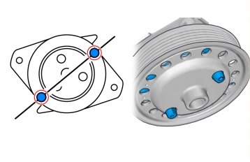 Slacken the tensioner. Use: 19 mm fixed wrench. Lock the tensioner in tensioned position. Use: 3 mm pin.