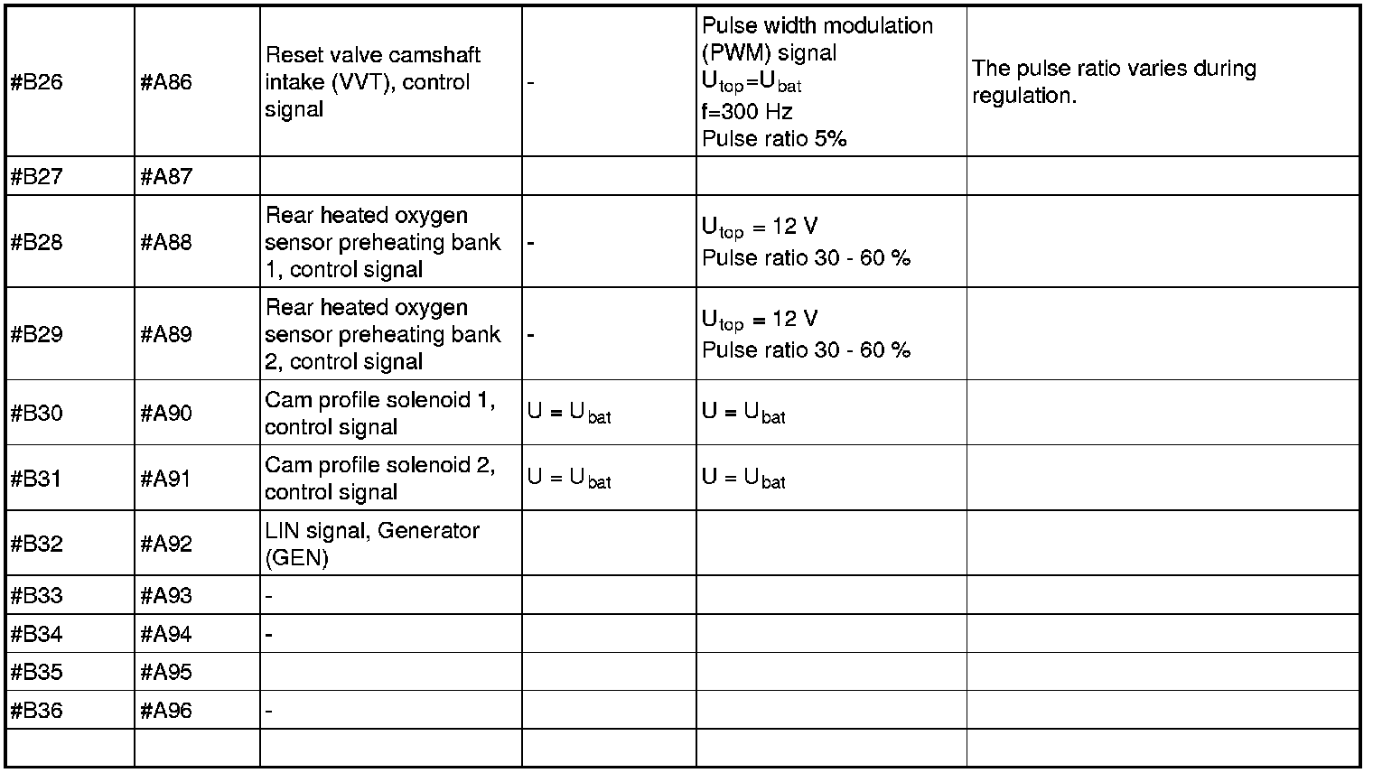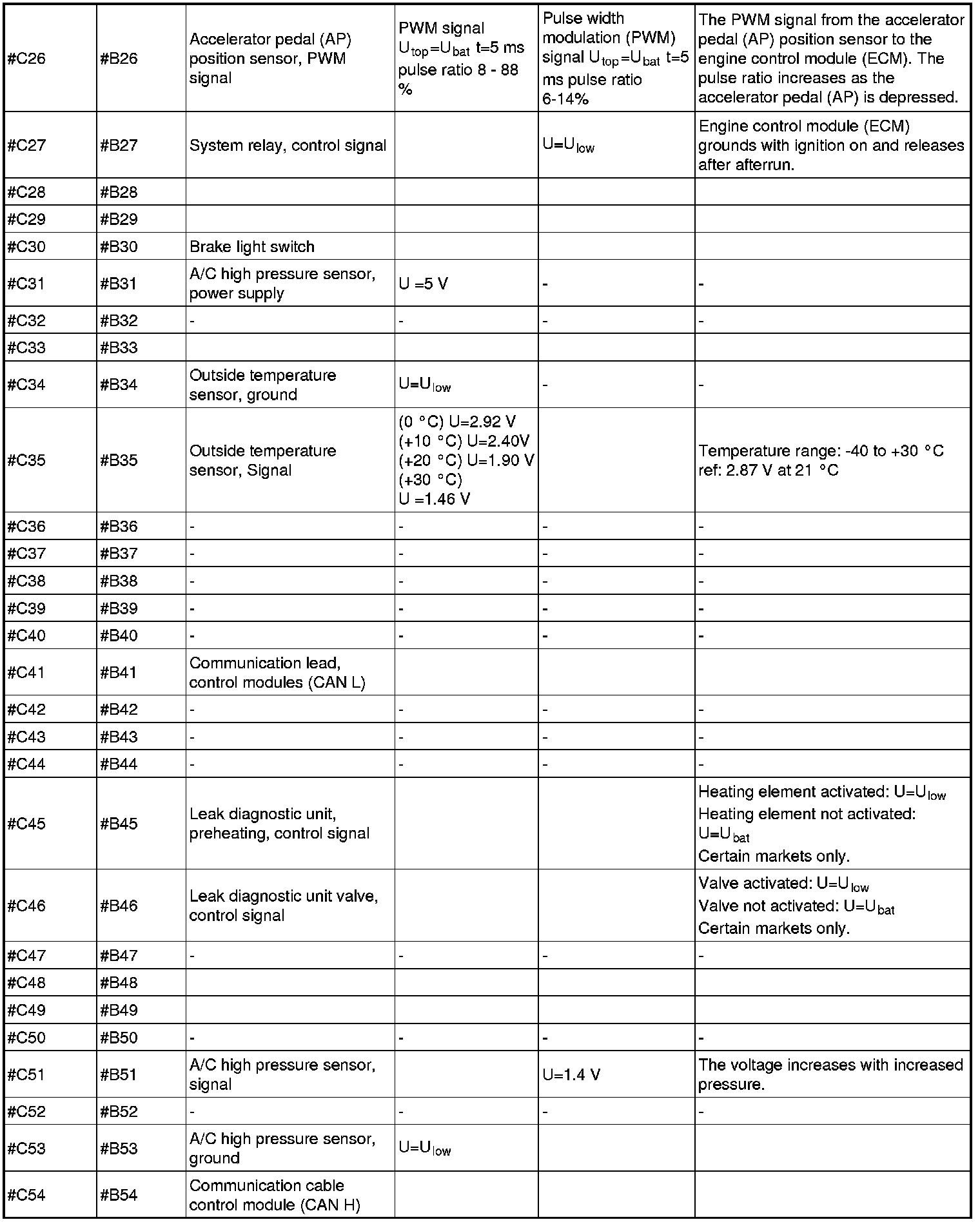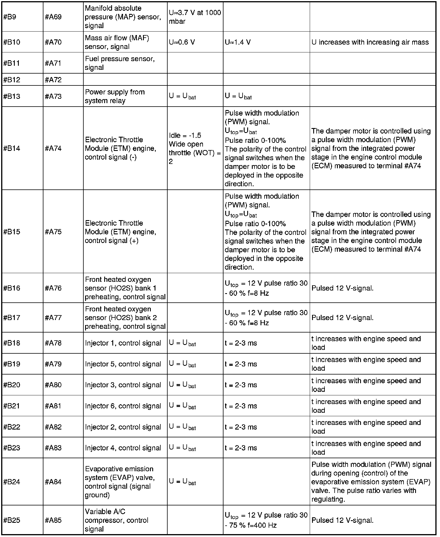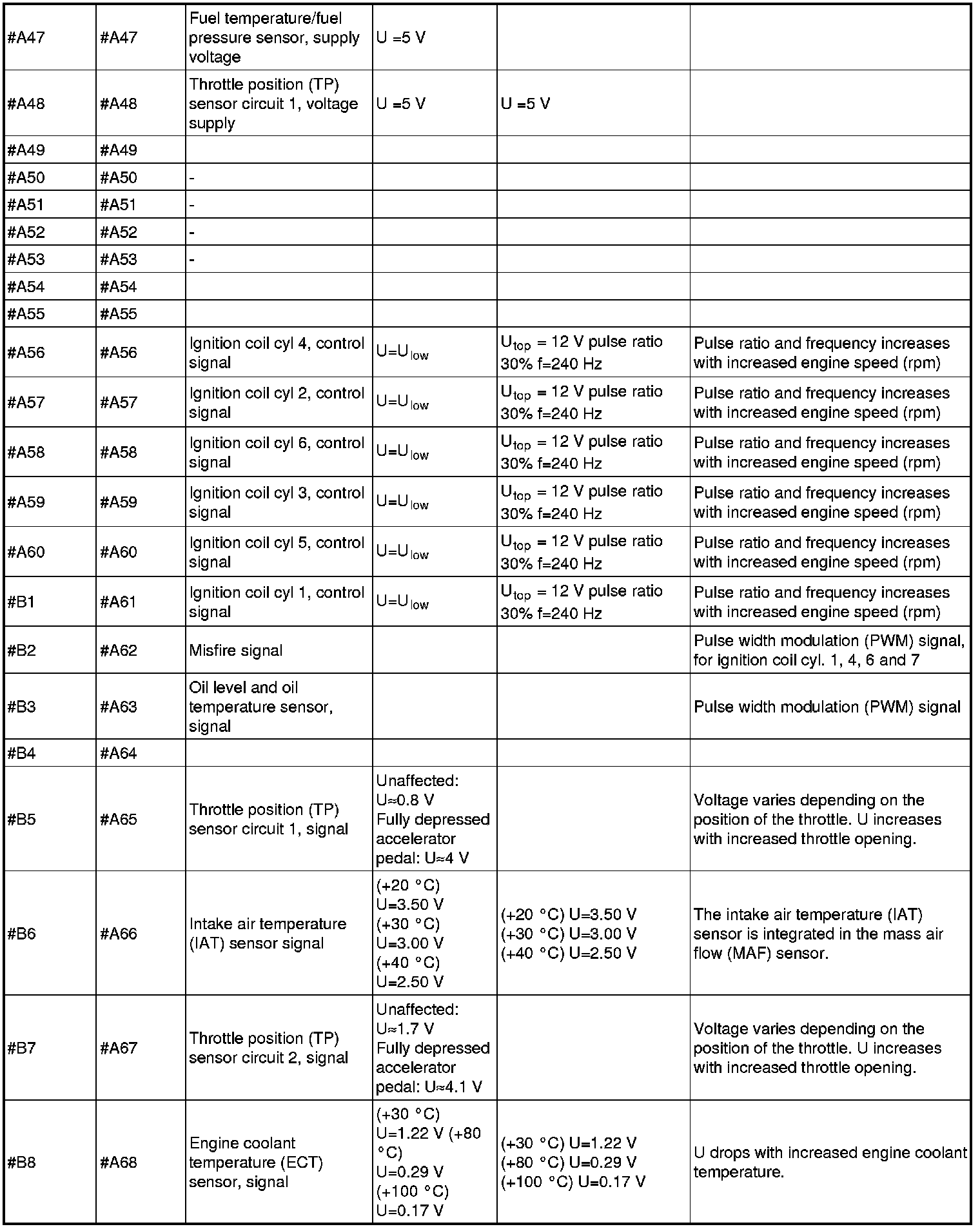 All values below are measured between the relevant terminal in column 2 and #Axx (#Axx on the breakout box) unless otherwise stated in parenthesis after the table entry.