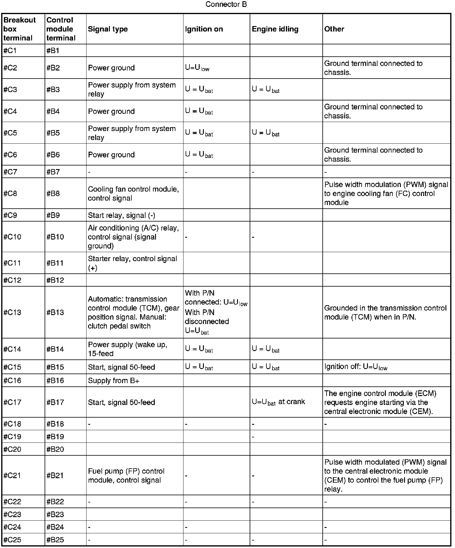 Connector B (58-pin engine side) corresponds to terminals #C1 - #58 on the breakout box.