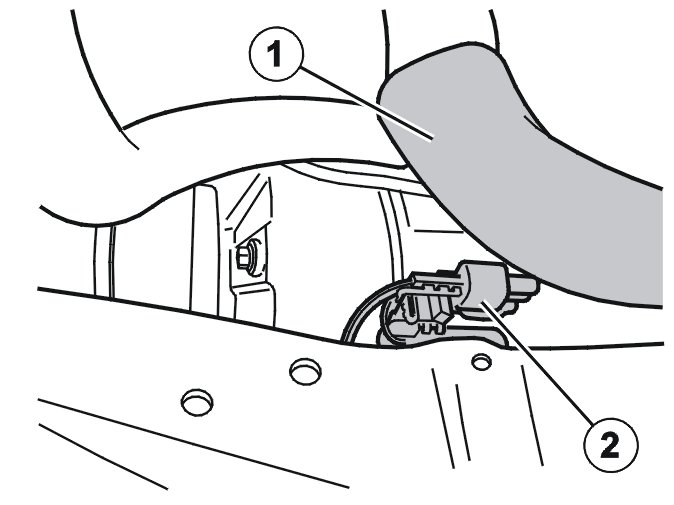 Remove the lower mounting screw (1) at the pulley. The screw can be reached from underneath after the splashguard for the engine has been removed. The screw is in the right hand corner of the sub-frame.