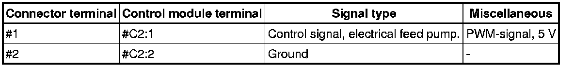 Measure the resistance between feed pump's terminal pin #1 and #2. The value should be approximately 3 - 5 ohms at +20° C.