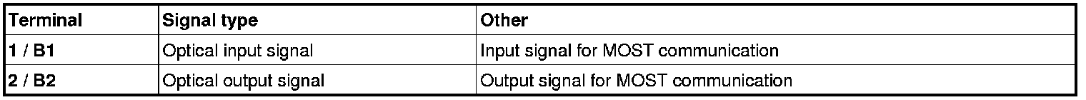 The two optical terminals in the connector are numbered in the same way on all control modules in the MOST network. The size of the plastic housing for the two optical terminals varies. A connector with integrated power supply is integrated with the optical terminals and one connector with only the optical terminals.