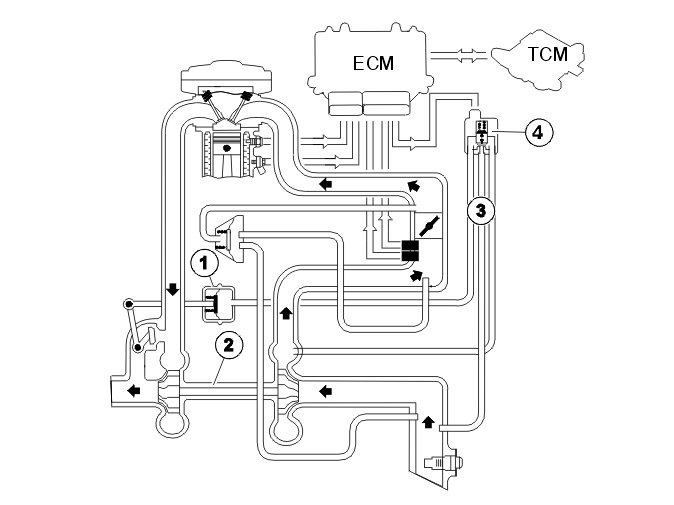 - The valve is grounded by the engine control module (ECM). The oil flows via the slits in the piston (5) to the oil channel (A) in the camshaft