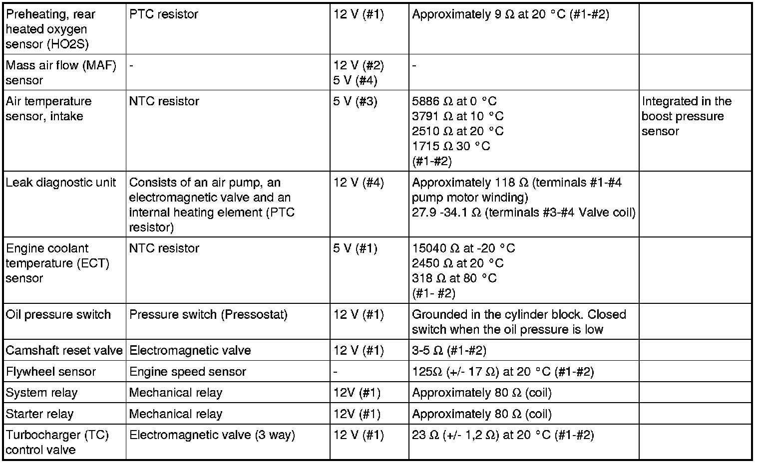 The component specification gives the value of the component when the connector is disconnected. Where no value is given, it is not possible to measure a relevant value at the component.