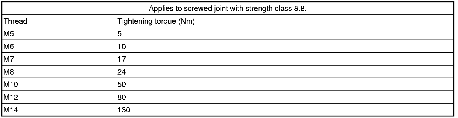 Note! Screws coated with a locking fluid or self locking nuts must be replaced with new screws when reinstalling.