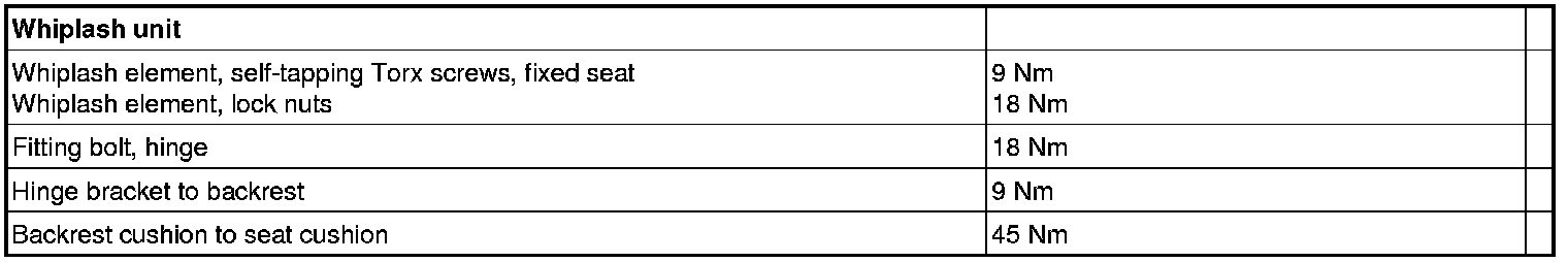 See the table below to find the tightening torques for components not included in the summary.