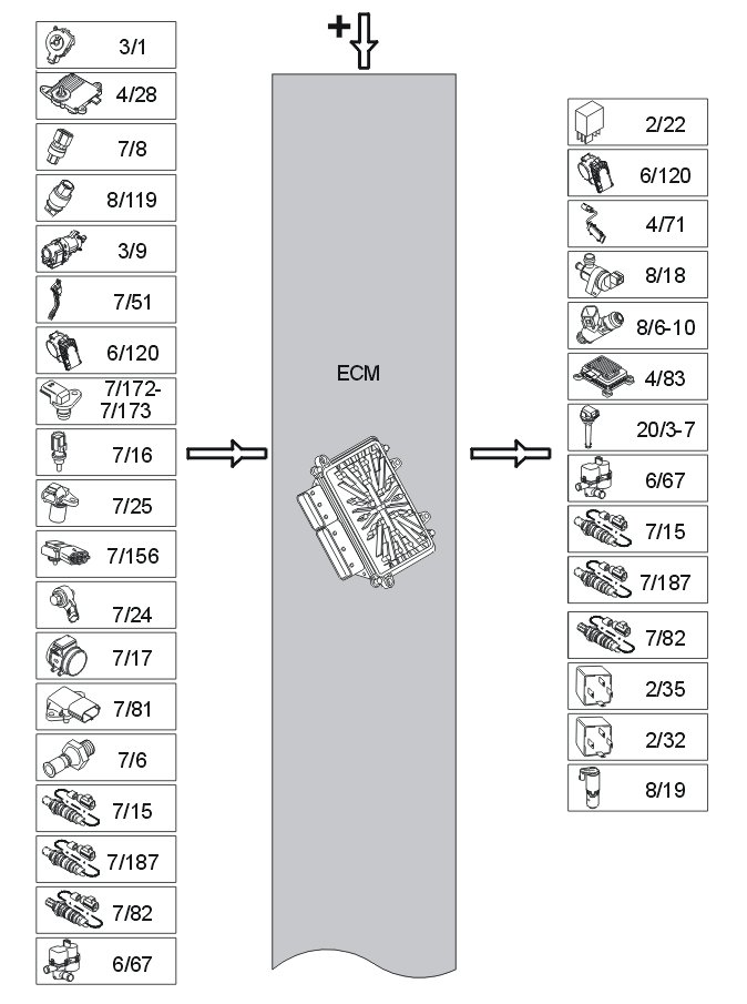 The micro-processor in the engine control module (ECM) receives signals from the different sensors and control modules in the vehicle. The micro-processor uses a program which calculates how the signals from the different sensors and other control modules are to be interpreted and how the components / functions need to be controlled.
