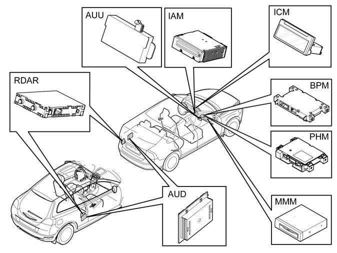 The vehicle is always equipped with an Infotainment control module (ICM) and Integrated Audio Module (IAM).