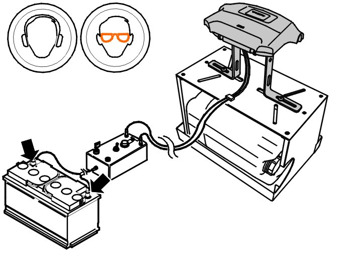 Lay out the connection cable so that the user is 9 m from the airbag.
