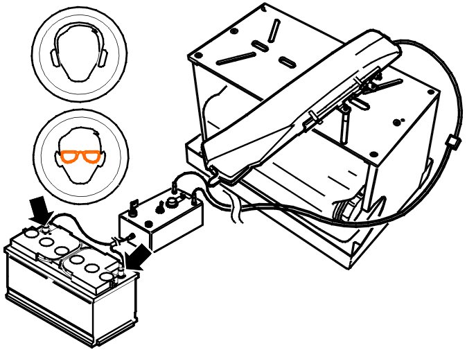 Connect the discharge box to a fully charged 12 V battery.