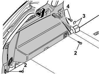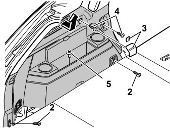 - Remove the clip (5) at the bottom of the storage compartment in the panel (applies to cars with three rows of seats).