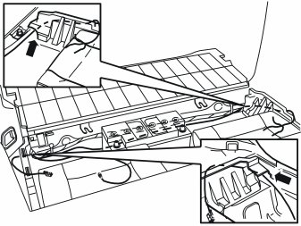 - Press in the catch on the rear brown connector in the fuse holder in the cargo compartment, turn the lock arm up as far as it will go and pull out the connector.