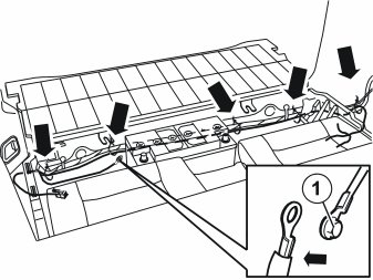 - Remove the ground screw and connect the ground lead (1) of the new wiring harness. Tighten the ground screw securely.