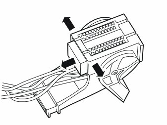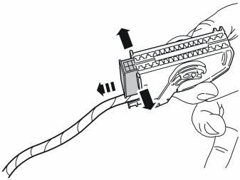 - Carefully prise apart the sides of the connector holder in the ends so that the connector can pass by the retaining hooks.