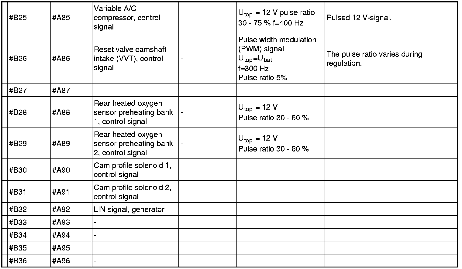 All values indicated below are between respective connection in column 1 and #A C2 on the breakout box. If this is not the case, it is indicated within brackets.
