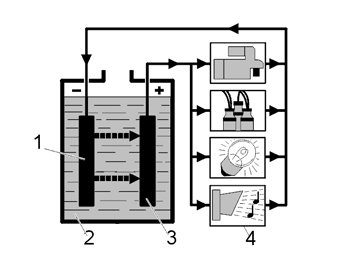 4. The power supply from the generator or the external battery charger.