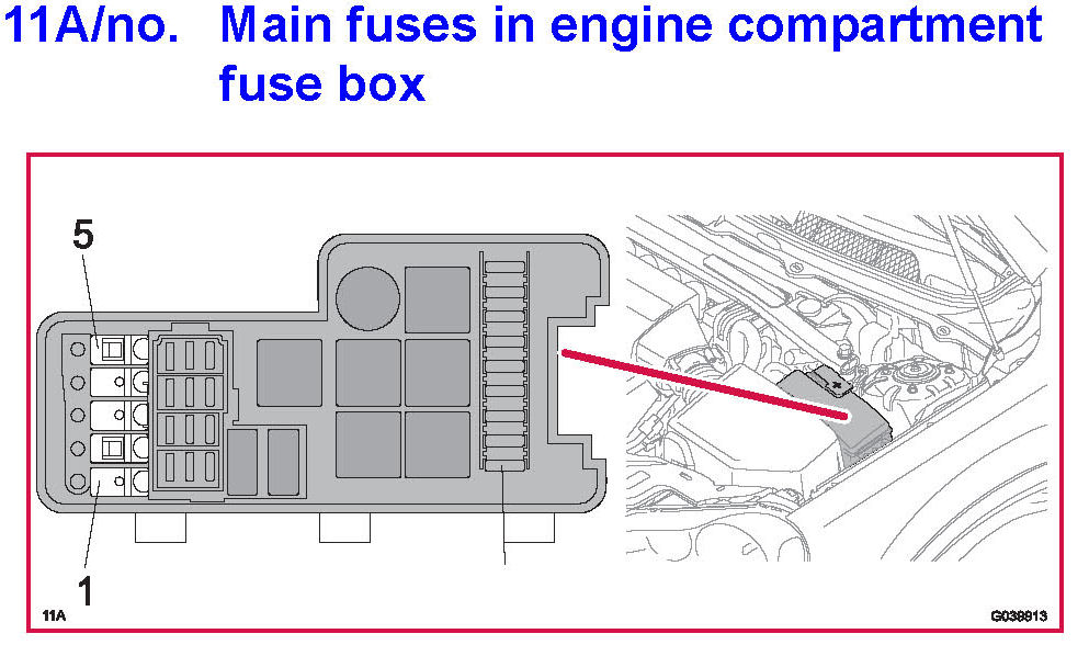11A/No. Main Fuses In Engine Compartment Fuse Box