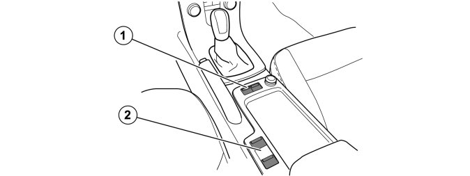 If the vehicle is equipped with up to two of the mentioned functions above, switch tunnel console front (1) controls activation and deactivation of these functions.