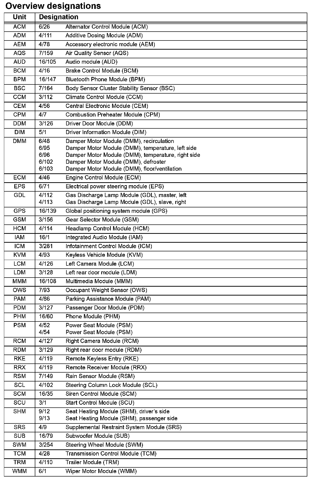 Overview Designations
