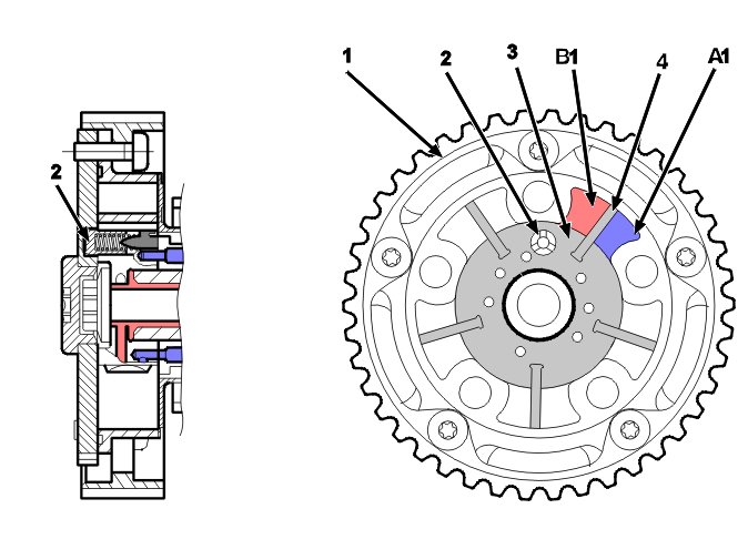 Hint: The illustration is a view of the CVVT unit from the side and from the rear.