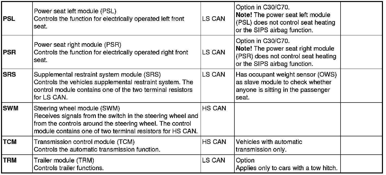 The number of control modules in the CAN varies depending on the level of equipment, the vehicle model and the structure week.