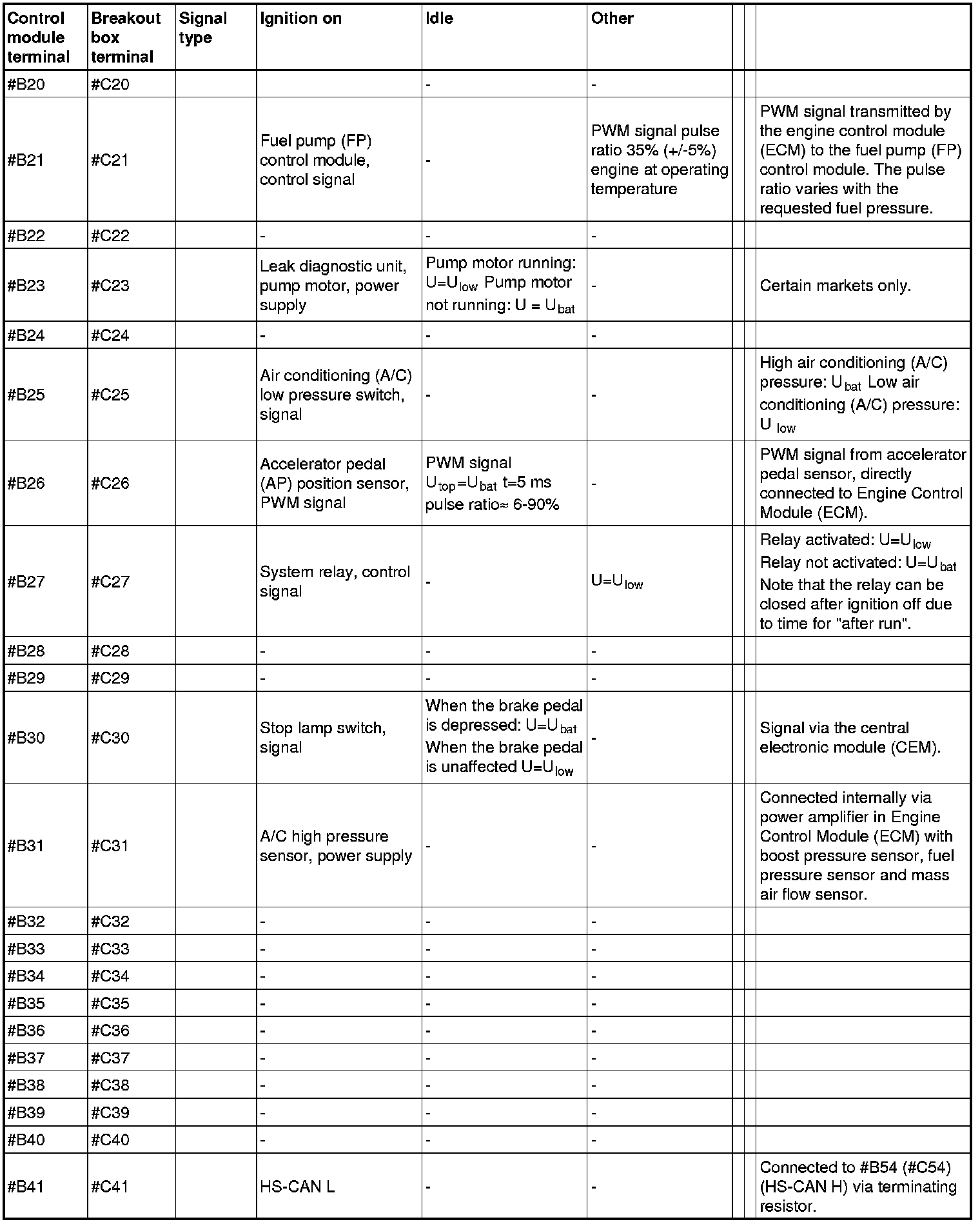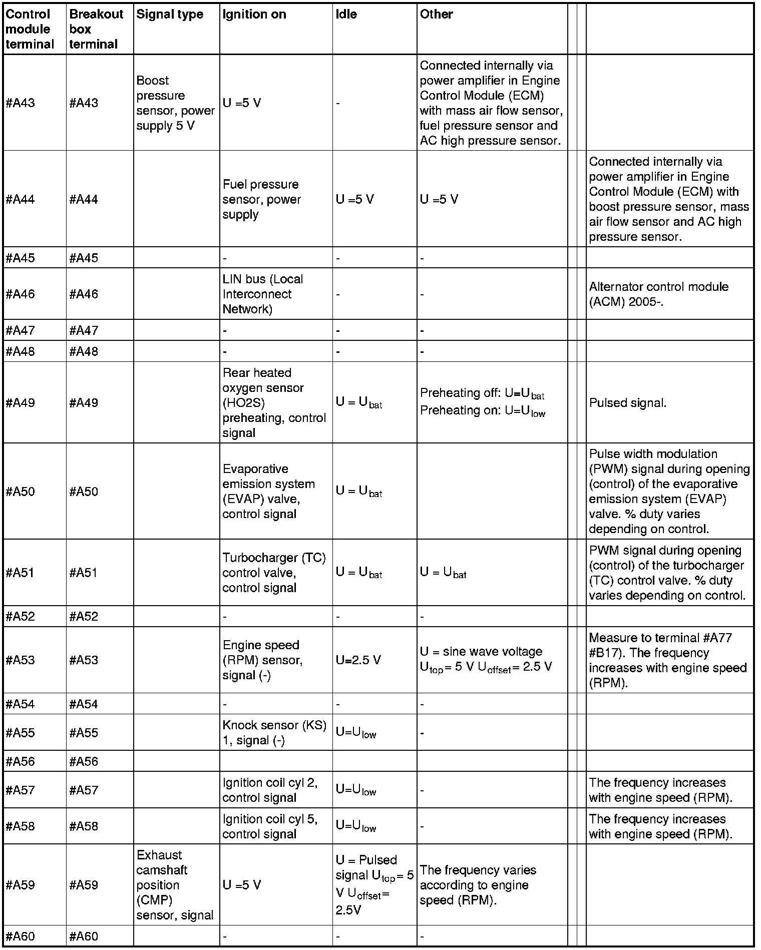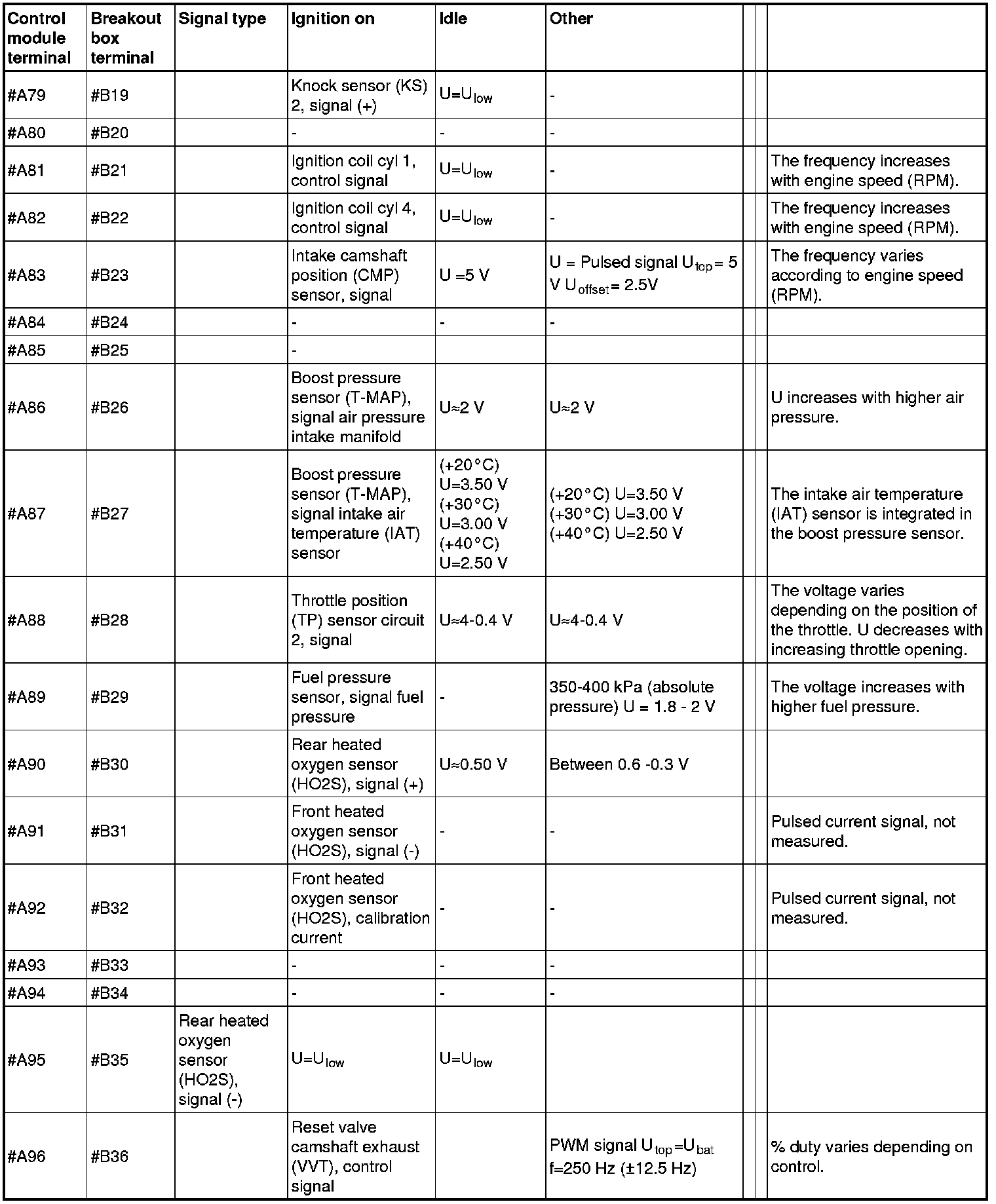 All values given below are between the terminals stated in column 1 and breakout box terminal in the terminal) and terminal #B1 (#C1) unless otherwise indicated in column 6 (Miscellaneous).
